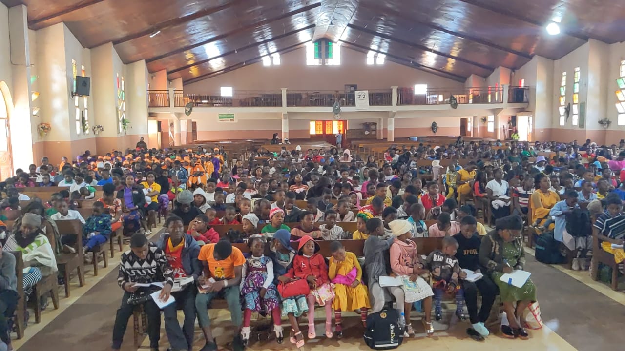 Adolescents preparing to take survey on LLPW project in Cameroon